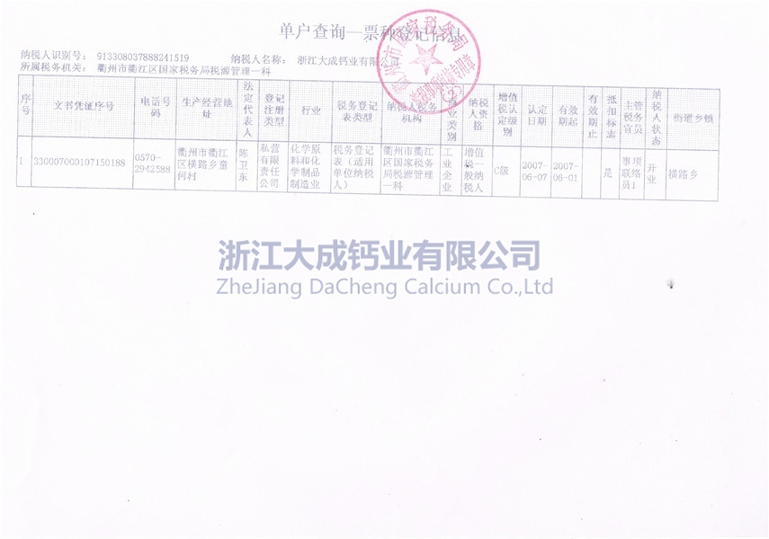 浙江大成鈣業(yè)有限公司